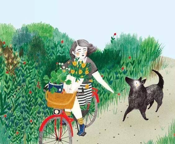 在不是充满尘土而是充满花瓣的道路上吹着口哨,踩着脚踏车的邮差,不再是孤独的邮差,也不再是愁苦的邮差了。